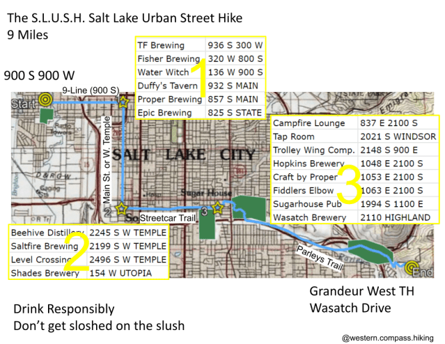 From the Jordan River to the Wasatch Mountains, it’s time for the Salt Lake Urban Street Hike (SLUSH). Get your friends together for this 9 mile hike/pub crawl.