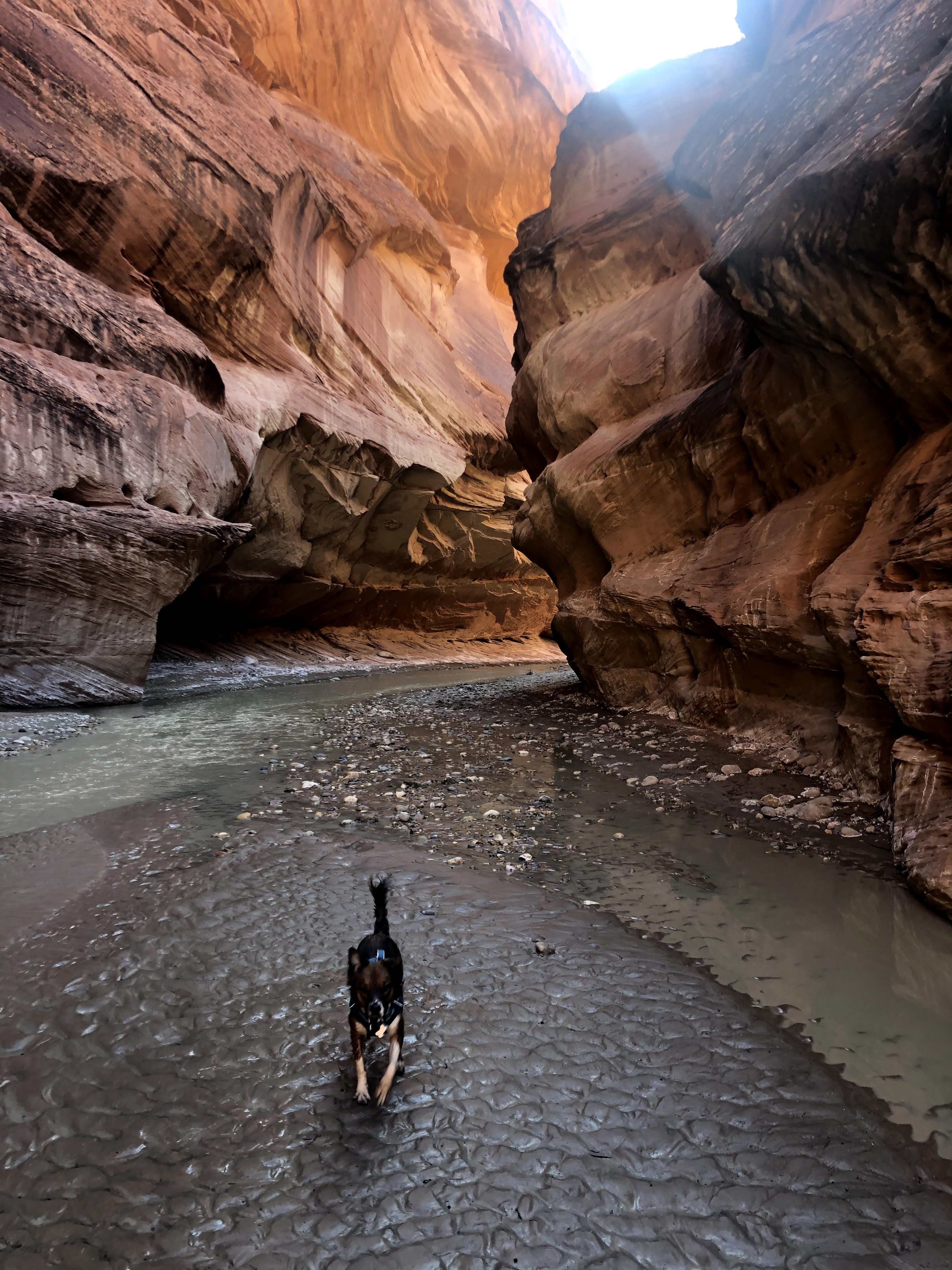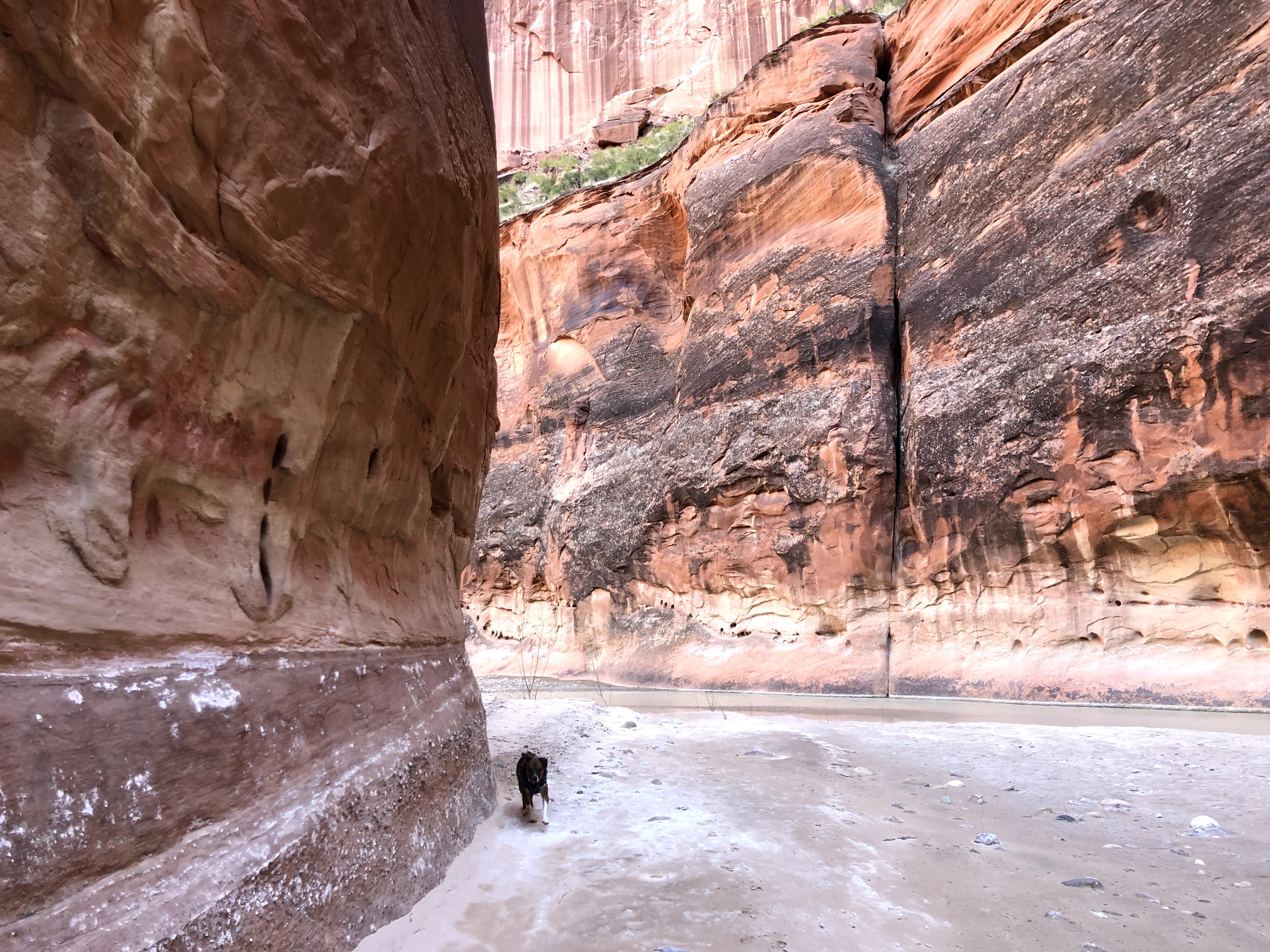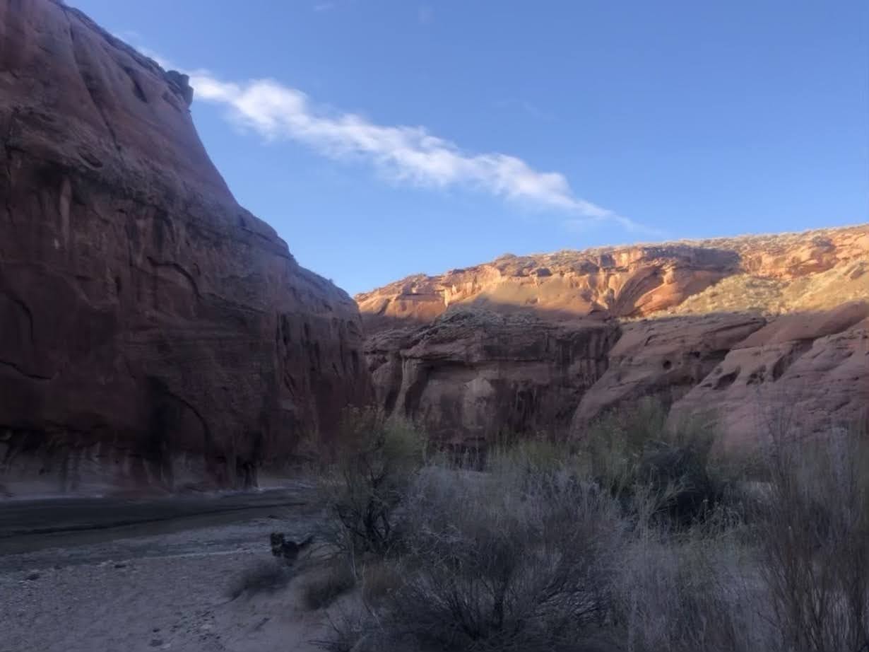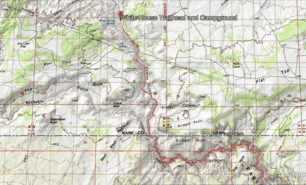 On a warm February weekend, my dog and I secured a permit to hike the Paria river. The permit was easy to obtain. I drove down on a Friday night after work and after ranger station hours. The ranger was nice enough to arrange it so that he left me my permit outside the building. After picking up my permit, I proceeded to the white house campground. Here I spent the night in my car. This is also the location of where the trail would start in the morning.