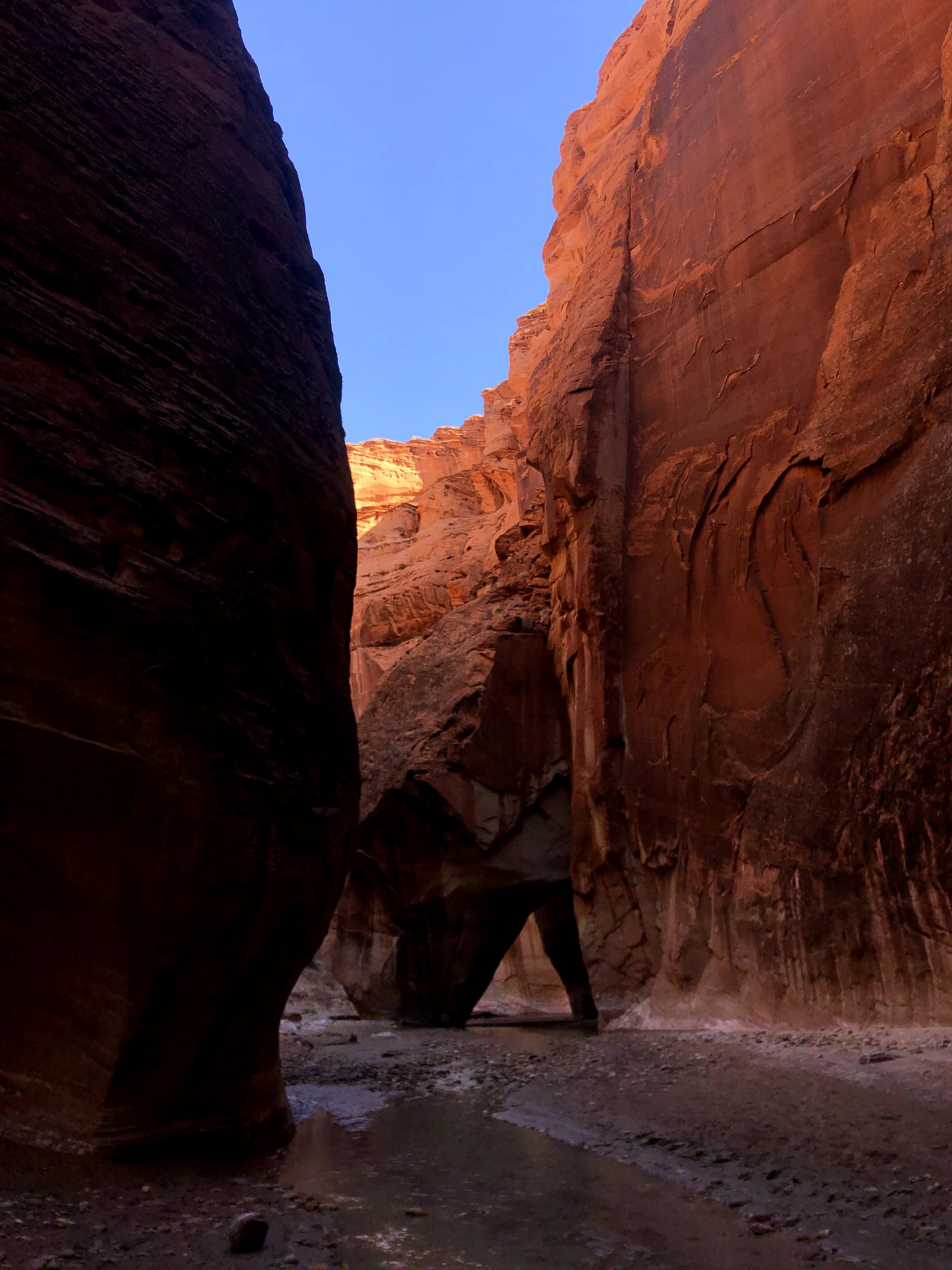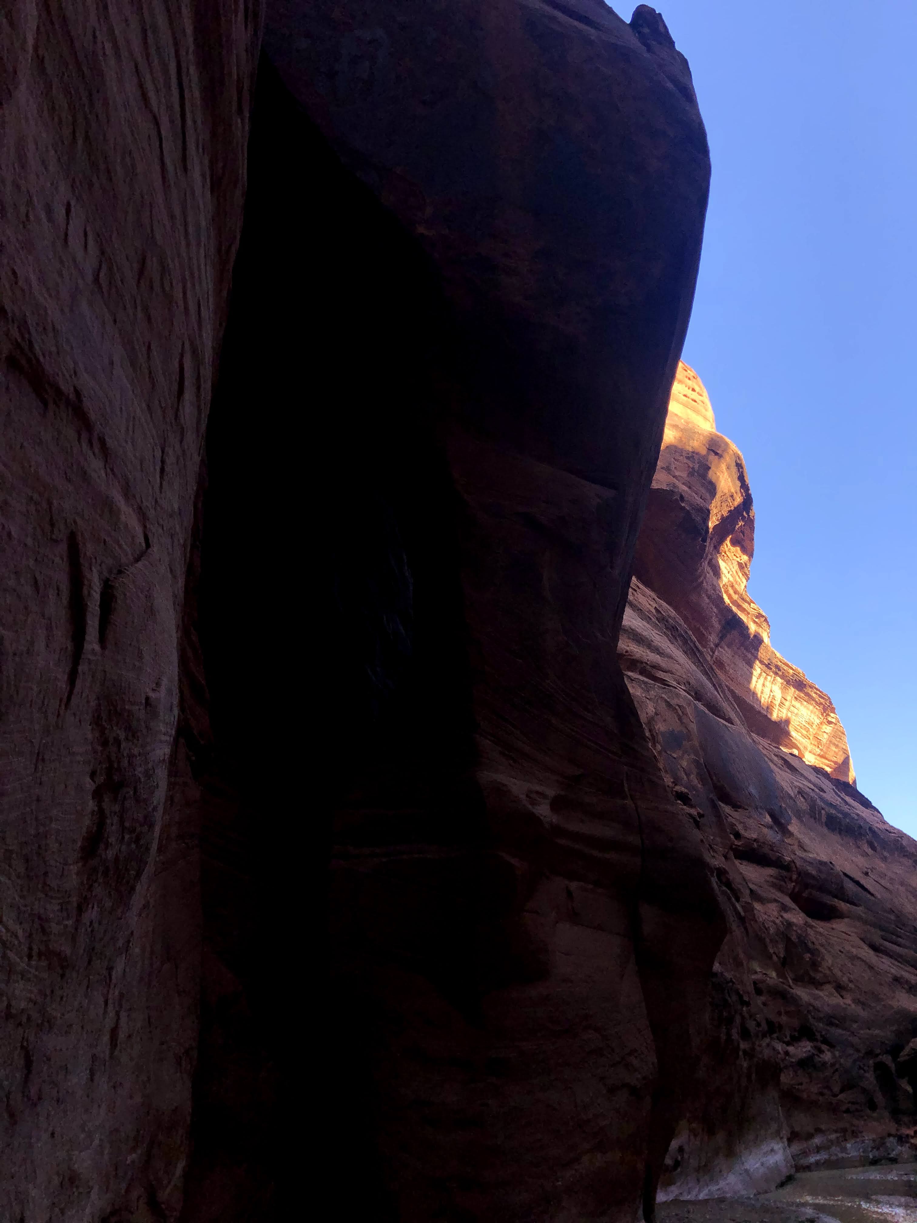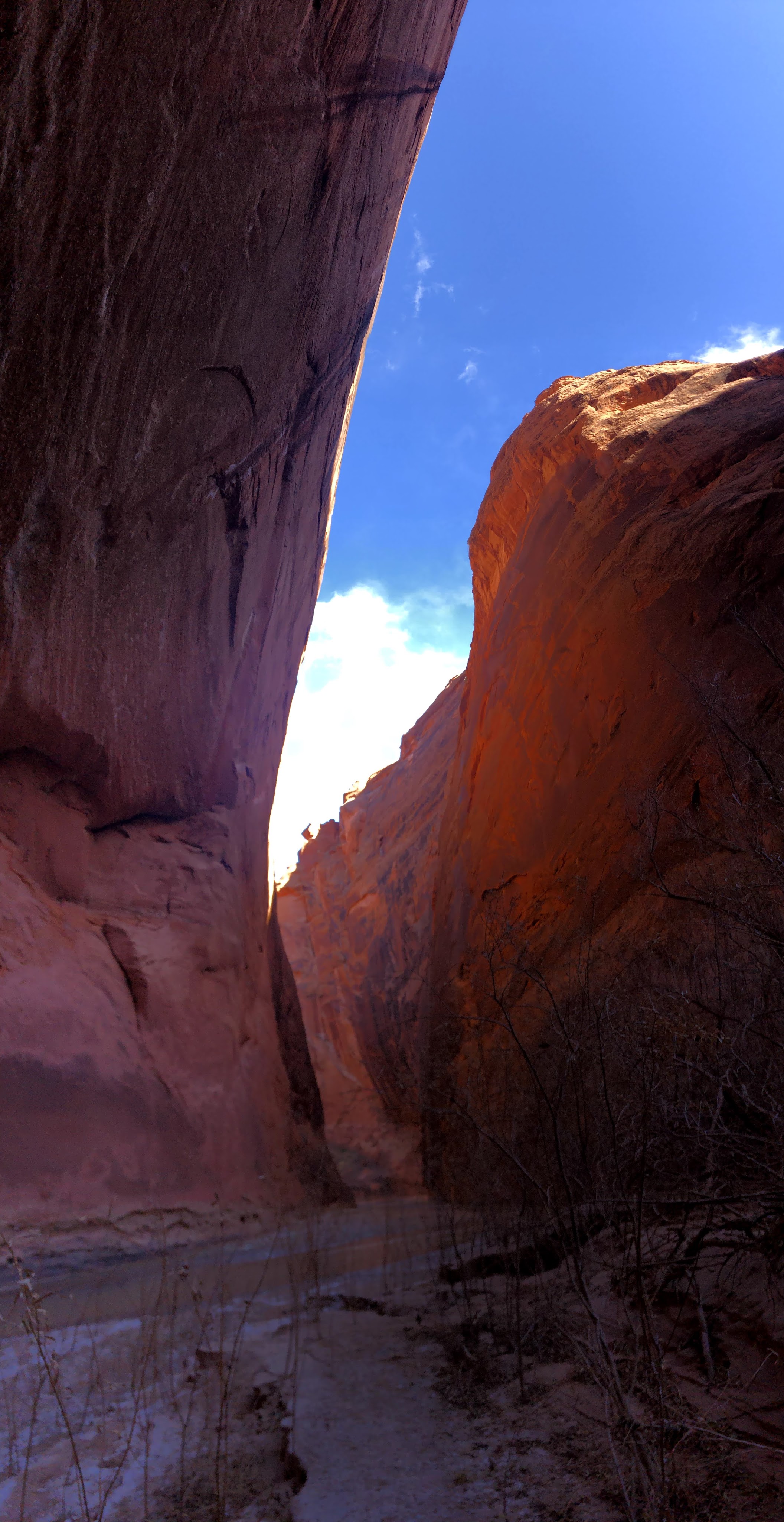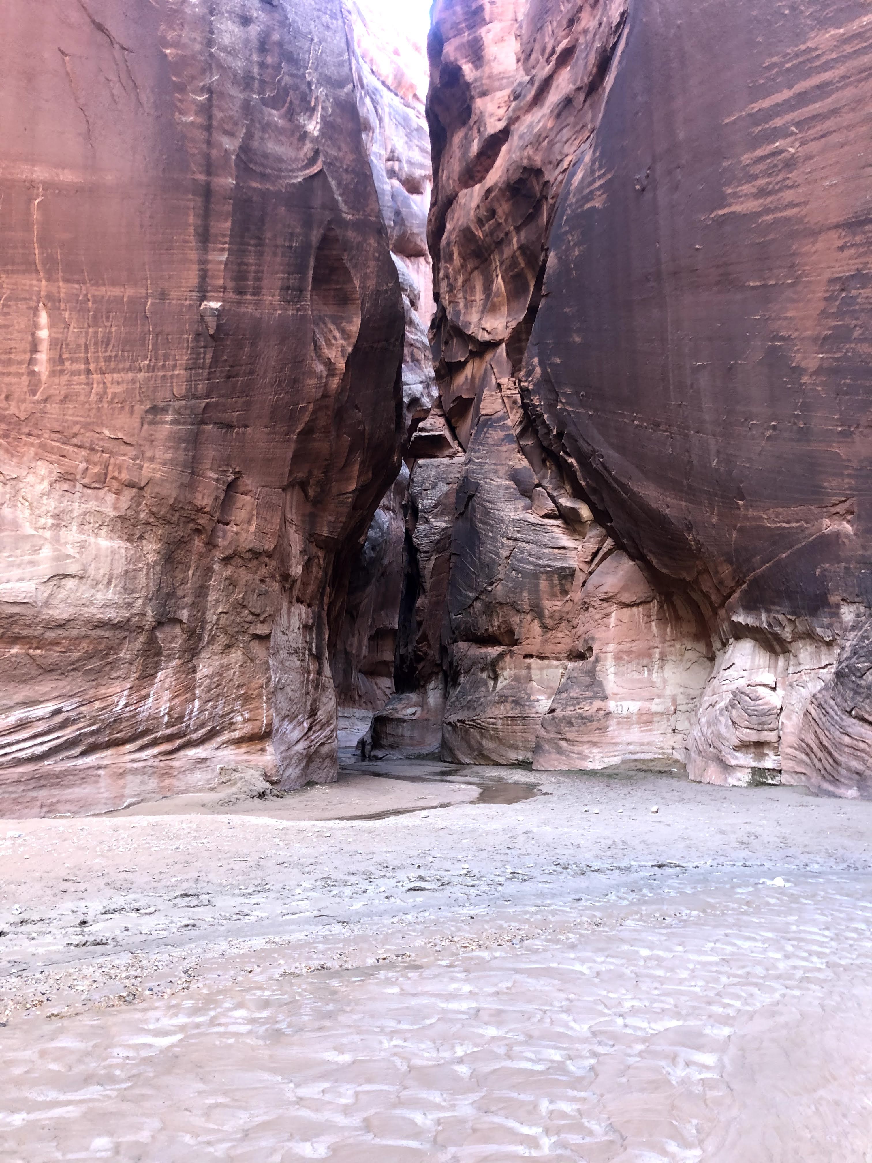 The next morning. I pack up camp and begin the cold slog back to the car. The twists and turns seem endless and nothing looks familiar. But eventually I return to the buckskin confluence and I know it’s only 7 or miles back to my car. As I get closer, In encounter a pair of day hikers. They find themselves on the top of a sand bar with the brief trail they had followed dead ending at the river. They ask me for my assistance not sure where the trail goes next. I try to explain to them there is no trail really and you just kind of walk through the river occasionally finding short trails on the banks. I don’t think this is the right hike for them and they will probably turn around soon. But I hope they at least pressed on a little further to see the narrows.