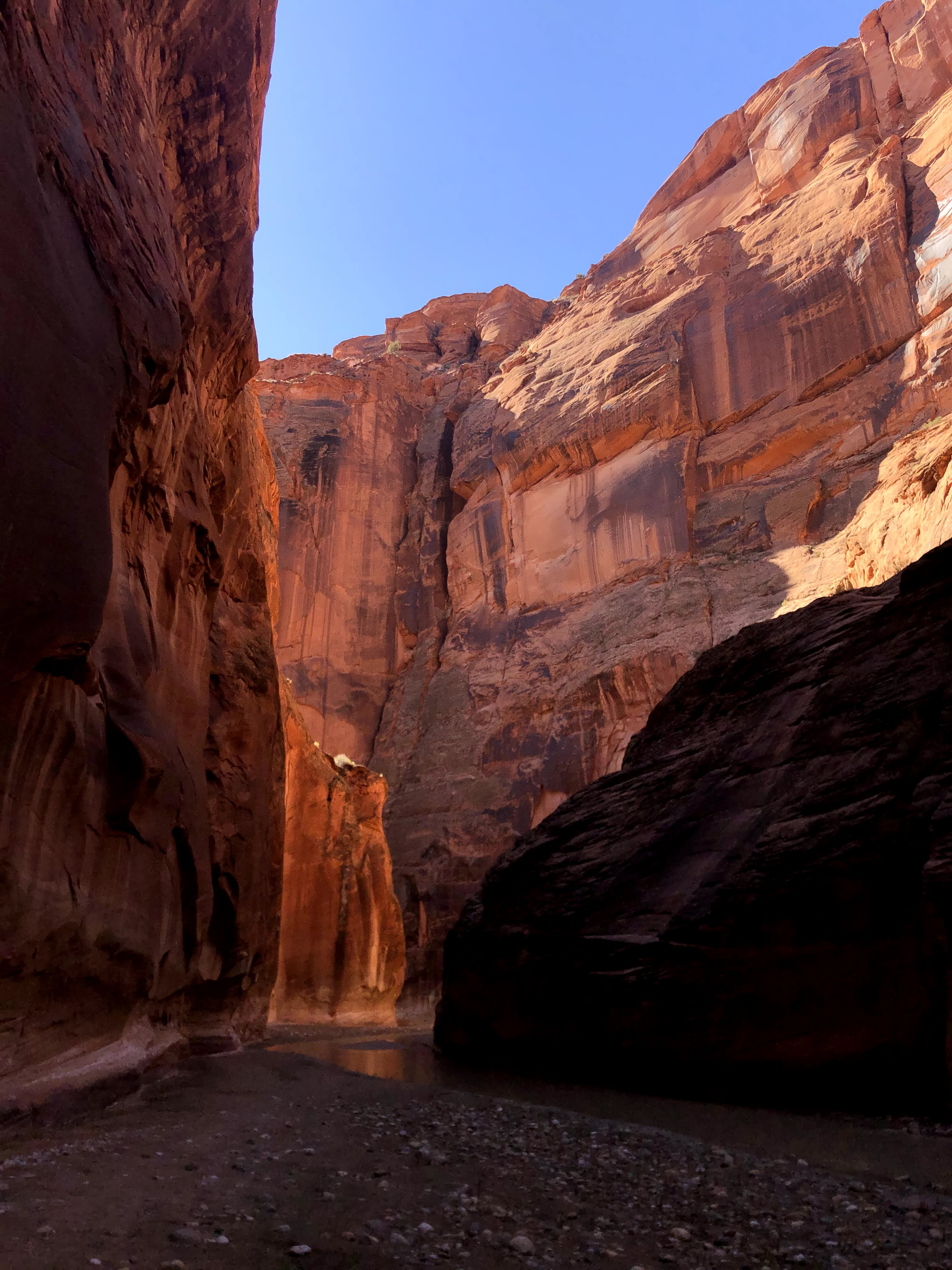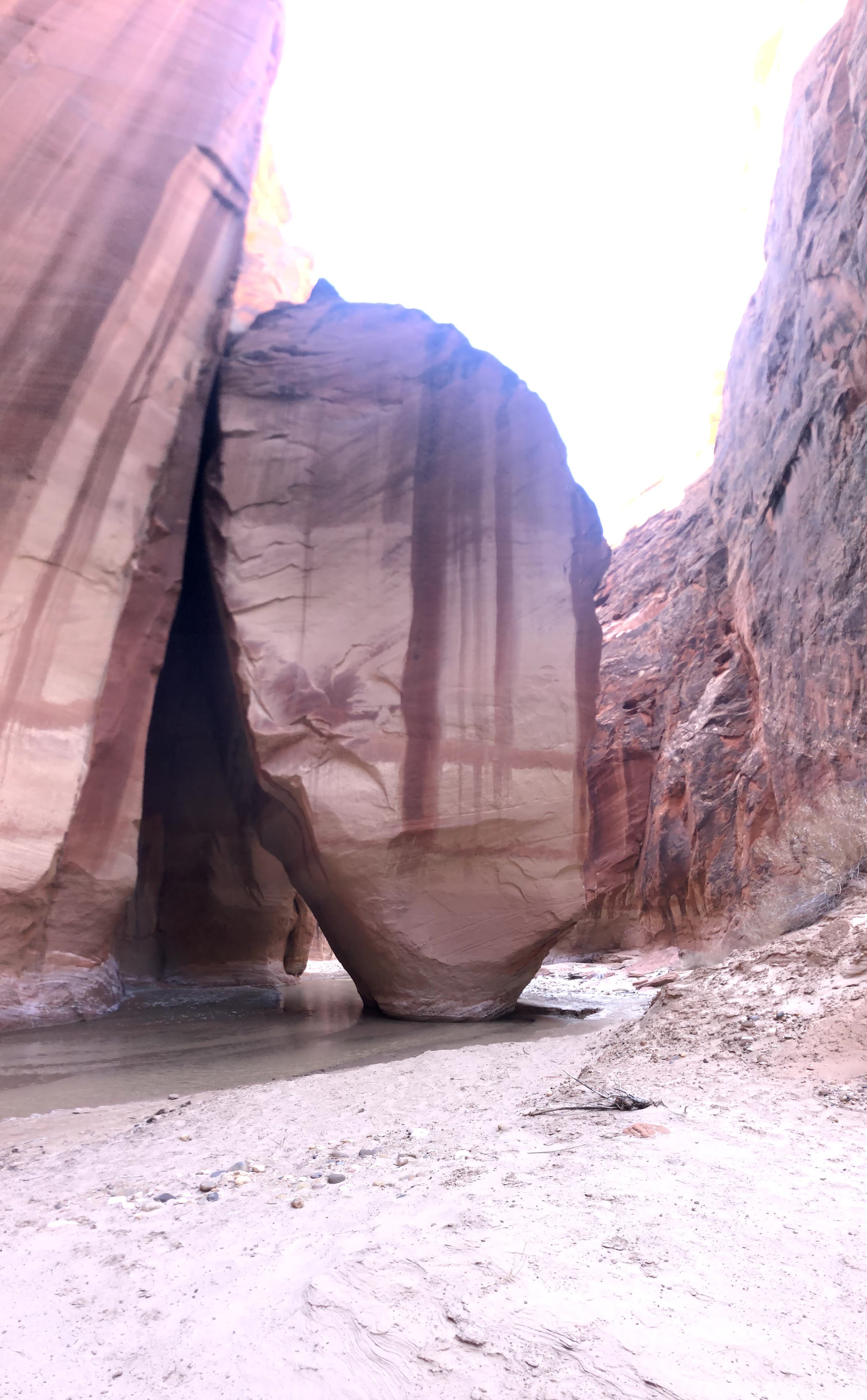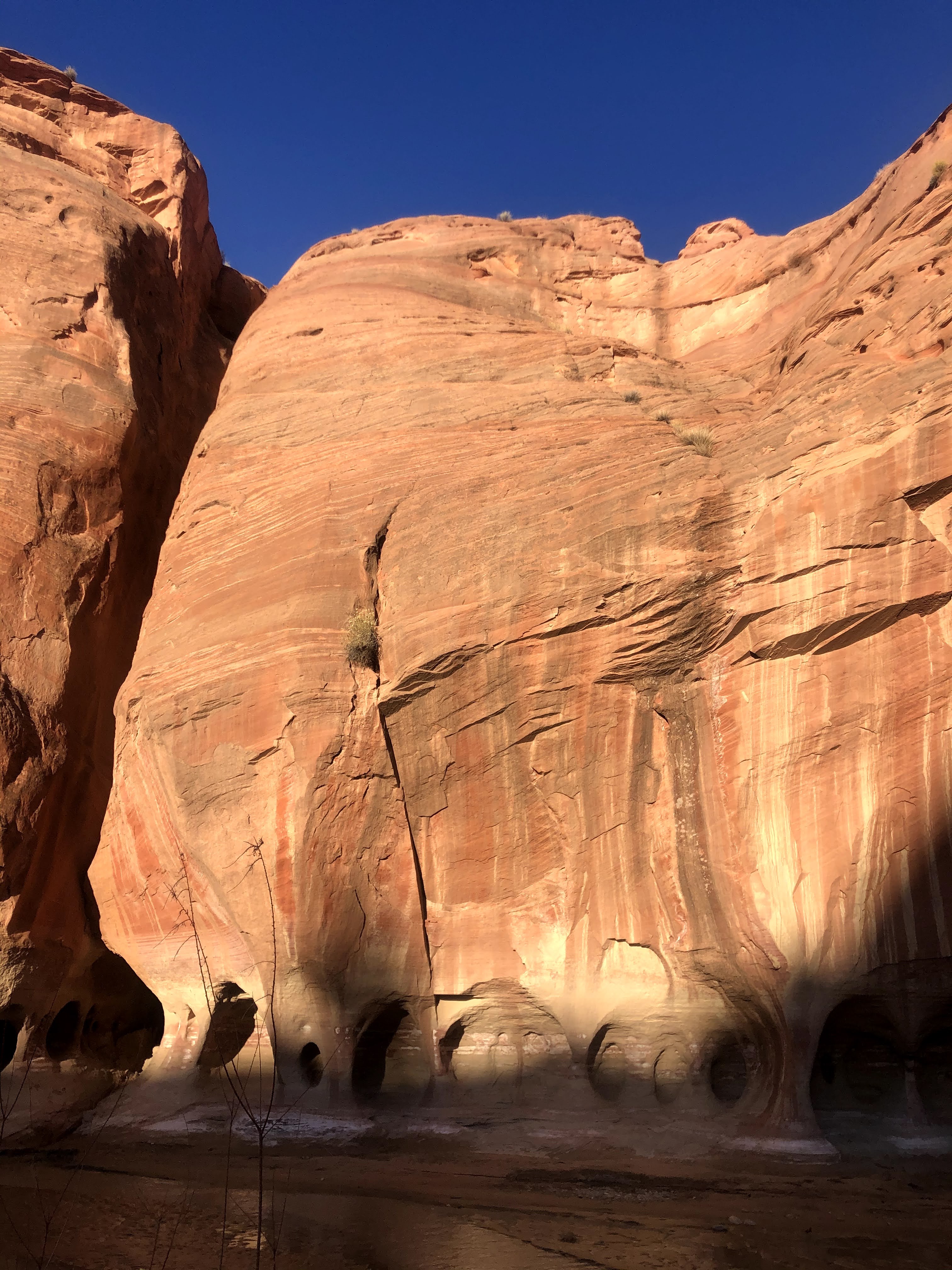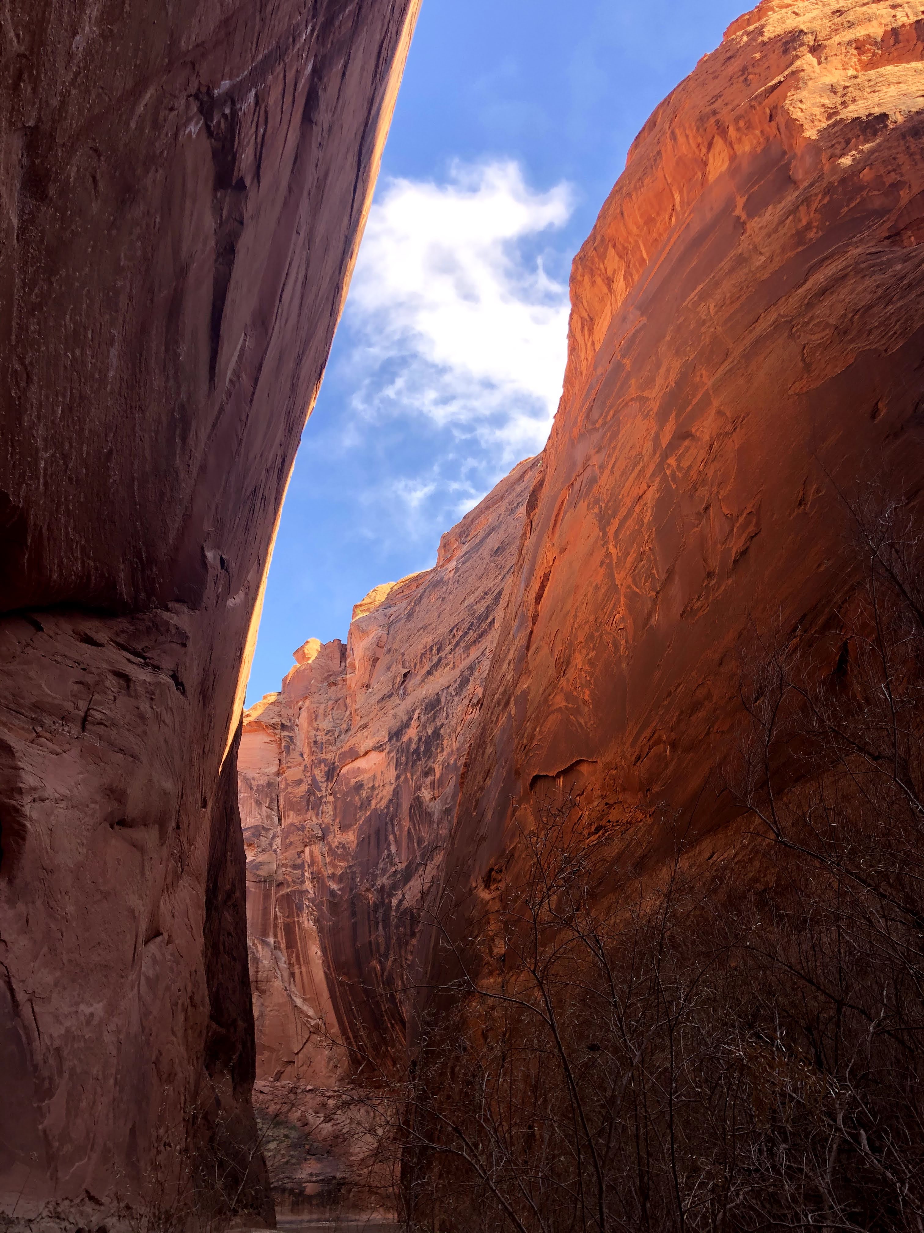 The next morning. I pack up camp and begin the cold slog back to the car. The twists and turns seem endless and nothing looks familiar. But eventually I return to the buckskin confluence and I know it’s only 7 or miles back to my car. As I get closer, In encounter a pair of day hikers. They find themselves on the top of a sand bar with the brief trail they had followed dead ending at the river. They ask me for my assistance not sure where the trail goes next. I try to explain to them there is no trail really and you just kind of walk through the river occasionally finding short trails on the banks. I don’t think this is the right hike for them and they will probably turn around soon. But I hope they at least pressed on a little further to see the narrows.